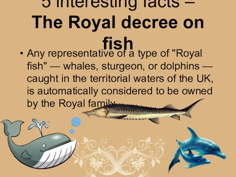 a type of "Royal fish" — whales, sturgeon, or dolphins — caught in the territorial waters of the UK, is automatically considered to be owned by the Royal family.
