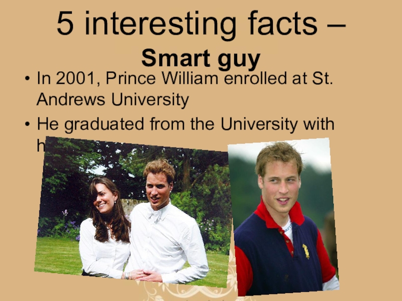 5 interesting facts – Smart guyIn 2001, Prince William enrolled at St. Andrews UniversityHe graduated from the