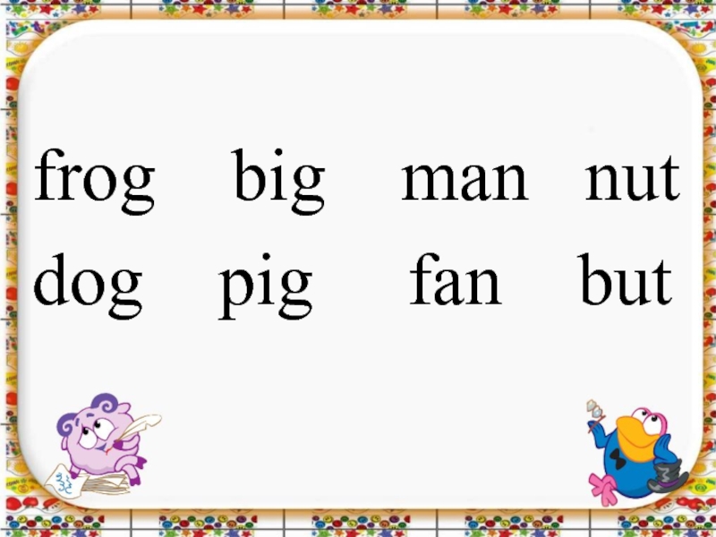frog    big    man   nutdog    pig     fan    but