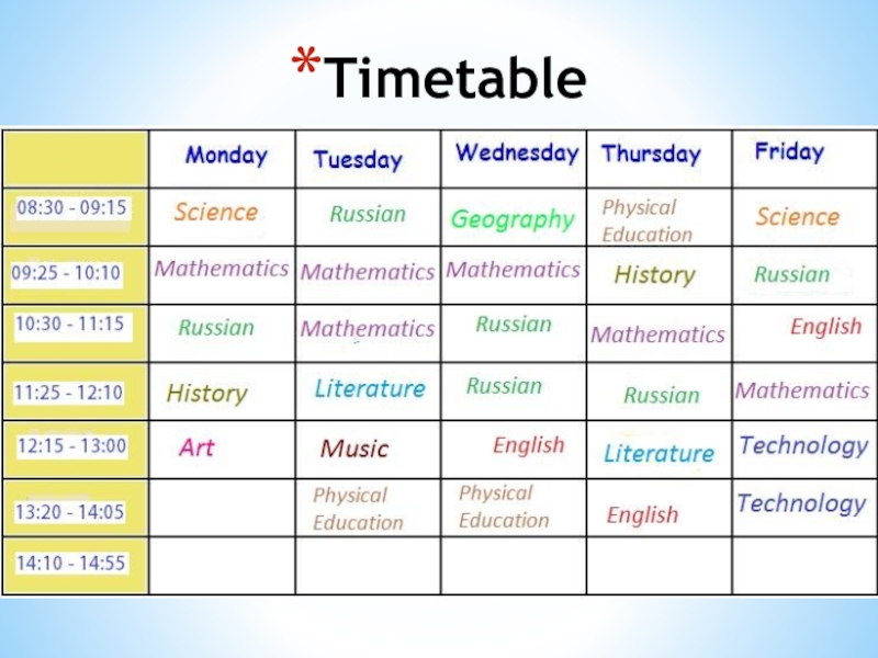 Слайд 18Timetable