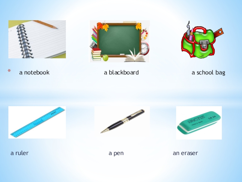 a notebook a blackboard a school bag