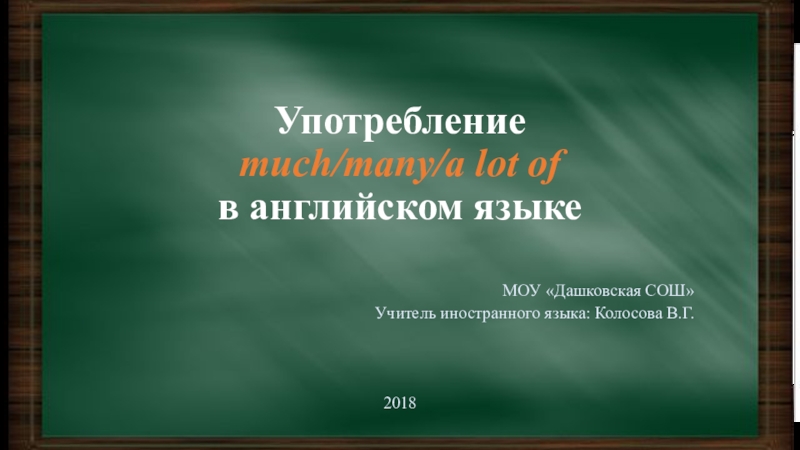 Употребление much/many/a lot of в английском языкеМОУ «Дашковская СОШ»Учитель иностранного языка: Колосова В.Г.2018