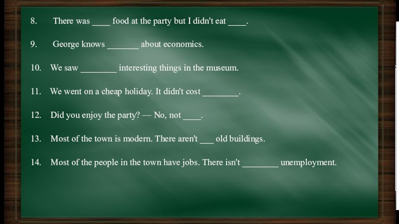 8.    There was ____ food at the party but I didn't eat ____.9.