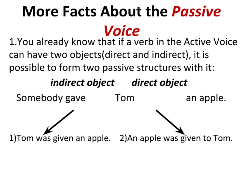 More Facts About the Passive Voice1.You already know that if a verb in the Active Voice can