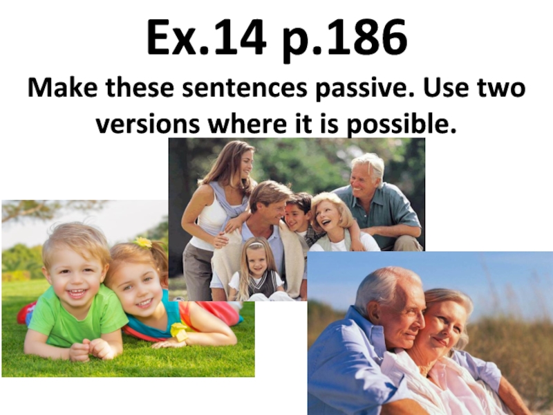 Слайд 11Ex.14 p.186 Make these sentences passive. Use two versions where it is