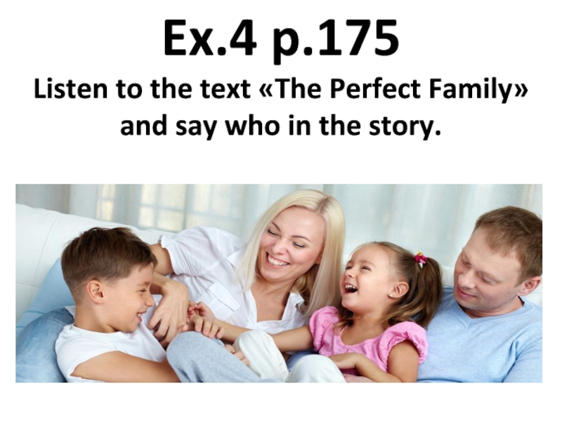 Слайд 5Ex.4 p.175 Listen to the text «The Perfect Family» and say who