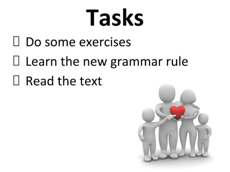 Tasks Do some exercises Learn the new grammar rule Read the text