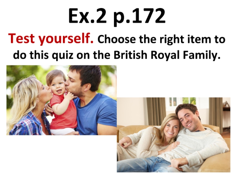 Ex.2 p.172 Test yourself. Choose the right item to do this quiz on the British Royal Family.