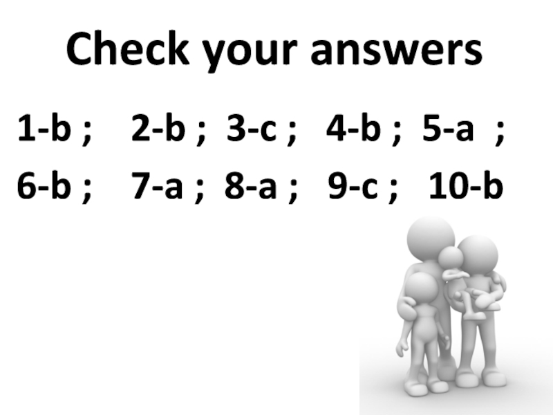Check your answers1-b ;  2-b ; 3-c ;  4-b ; 5-a ; 6-b ;