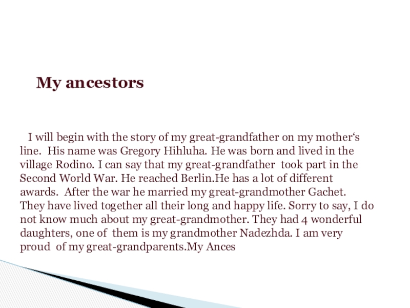 Слайд 3 My ancestors