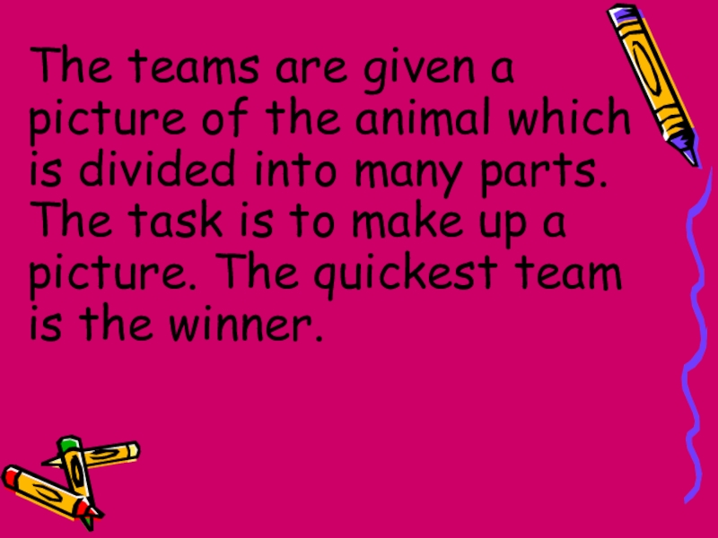 divided into many parts. The task is to make up a picture. The quickest team is the winner.