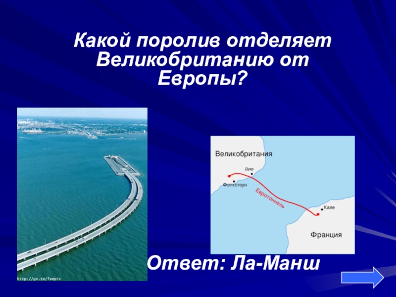 Какой поролив отделяет Великобританию от Европы?      Ответ: Ла-Манш