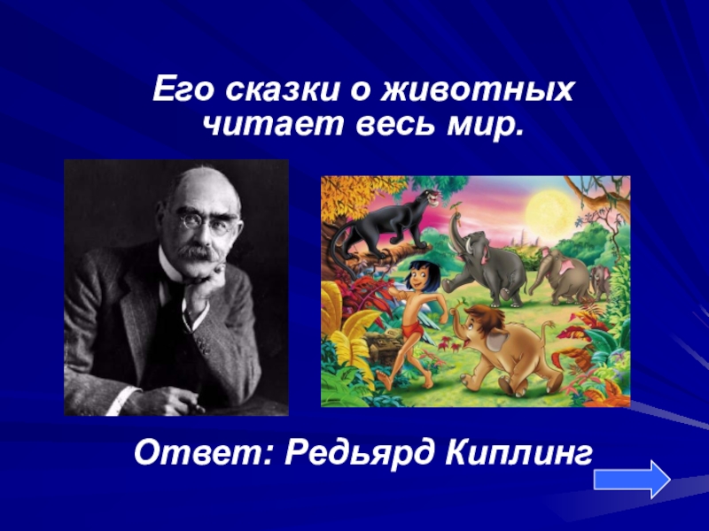 Его сказки о животных читает весь мир.Ответ: Редьярд Киплинг