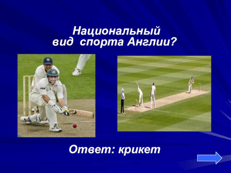 Национальный вид  спорта Англии?Ответ: крикет