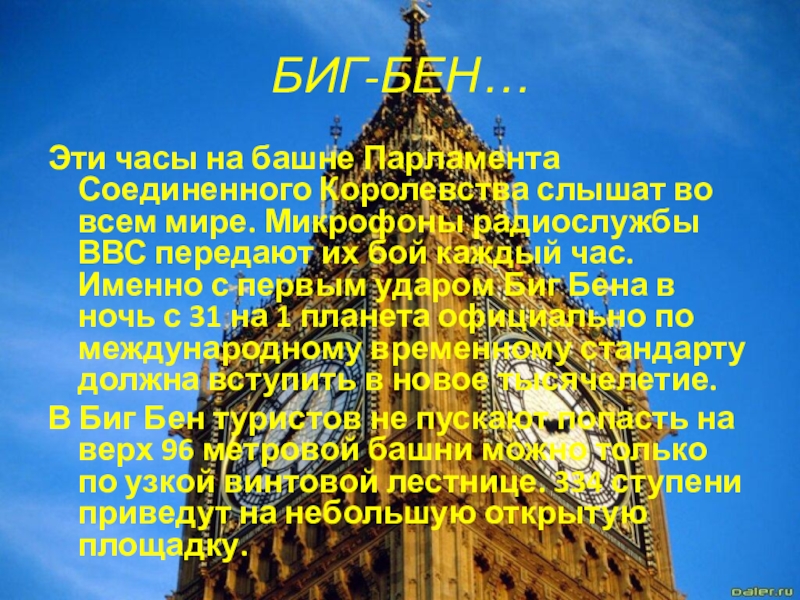 Эти часы на башне Парламента Соединенного Королевства слышат во всем мире.