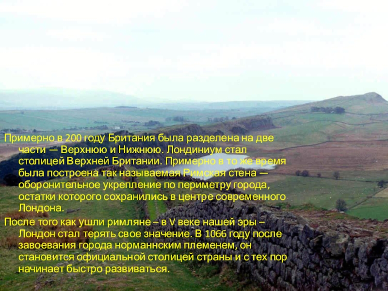 Слайд 3Примерно в 200 году Британия была разделена на две части — Верхнюю и