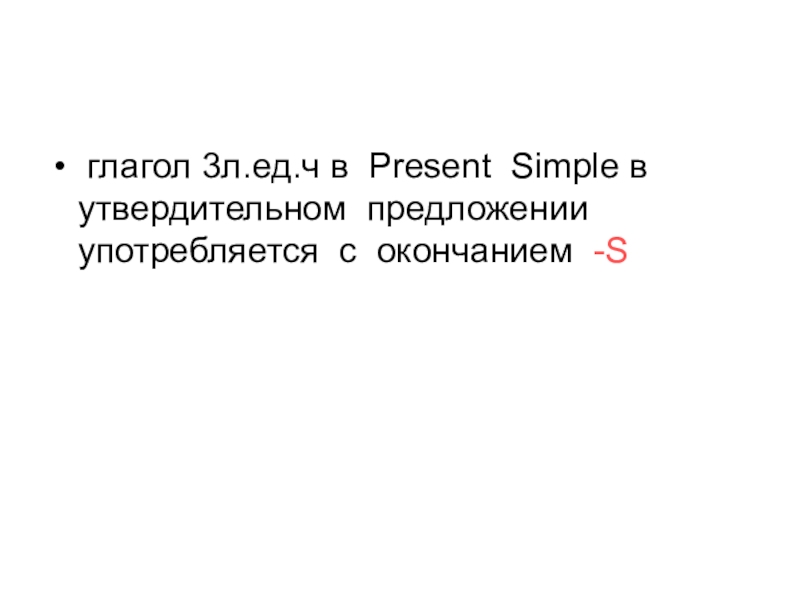 глагол 3л.ед.ч в Present Simple в утвердительном предложении употребляется с окончанием -S