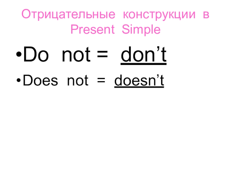 Oтрицательные конструкции в Present SimpleDo not = don’tDoes not = doesn’t