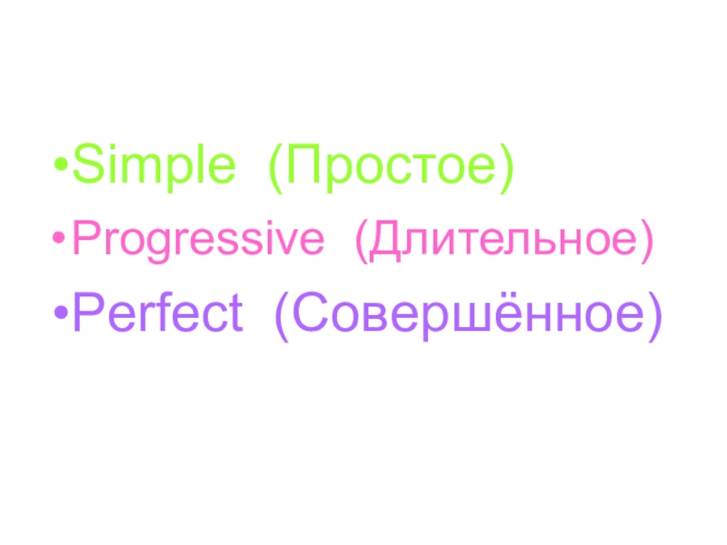 Simple (Простое)Progressive (Длительное)Perfect (Совершённое)