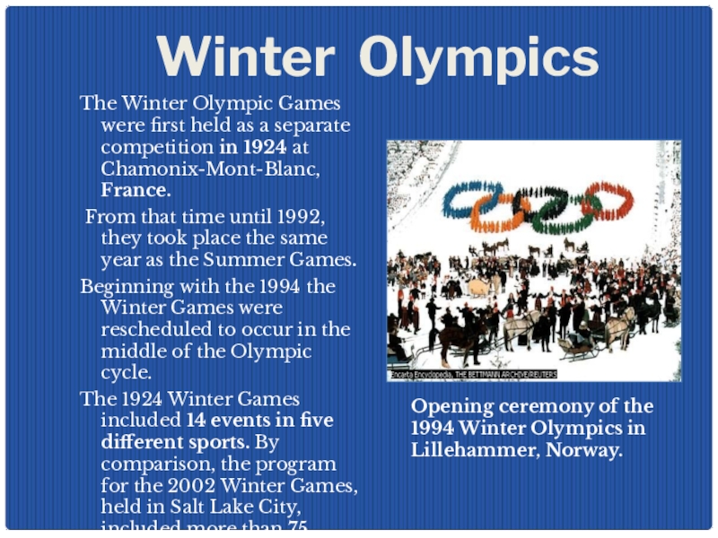 Opening ceremony of the 1994 Winter Olympics in Lillehammer, Norway.