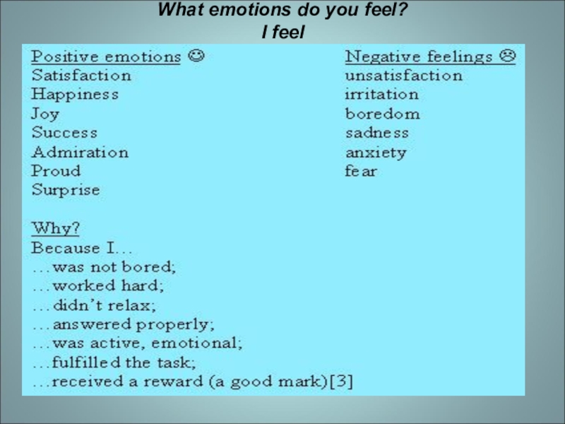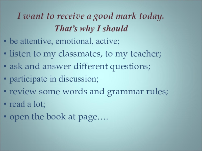 I want to receive a good mark today. That’s why I should be attentive, emotional, active;listen to
