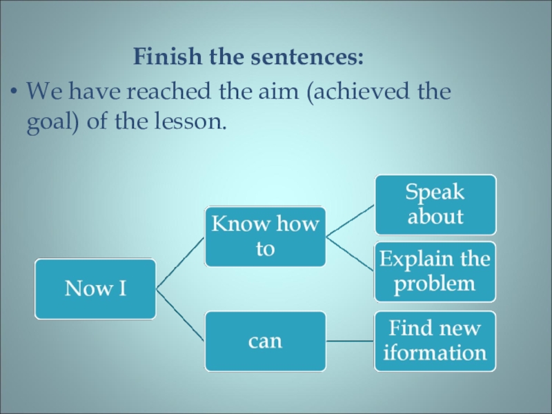 Finish the sentences:We have reached the aim (achieved the goal) of the lesson.
