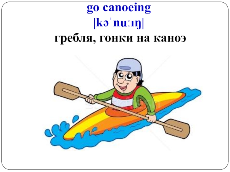 Слайд 4go canoeing |kəˈnuːɪŋ| гребля, гонки на каноэ
