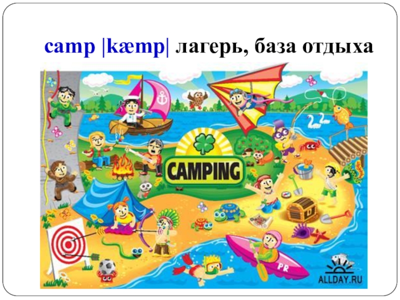 Слайд 3camp |kæmp| лагерь, база отдыха