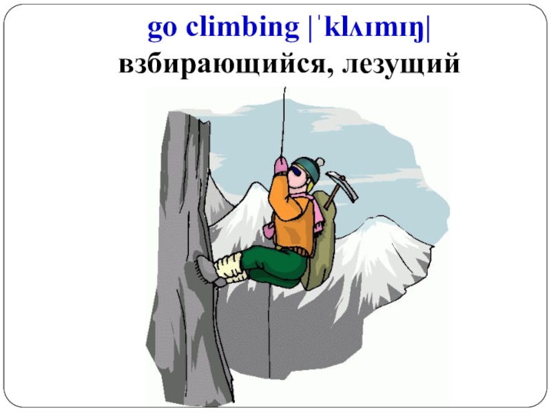 Слайд 5go climbing |ˈklʌɪmɪŋ| взбирающийся, лезущий