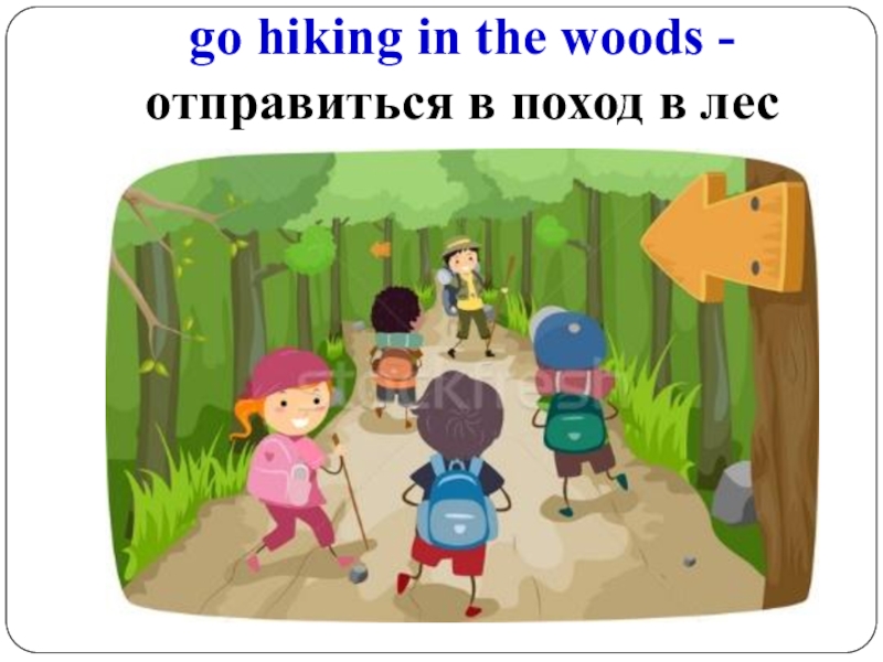 Слайд 9go hiking in the woods -отправиться в поход в лес