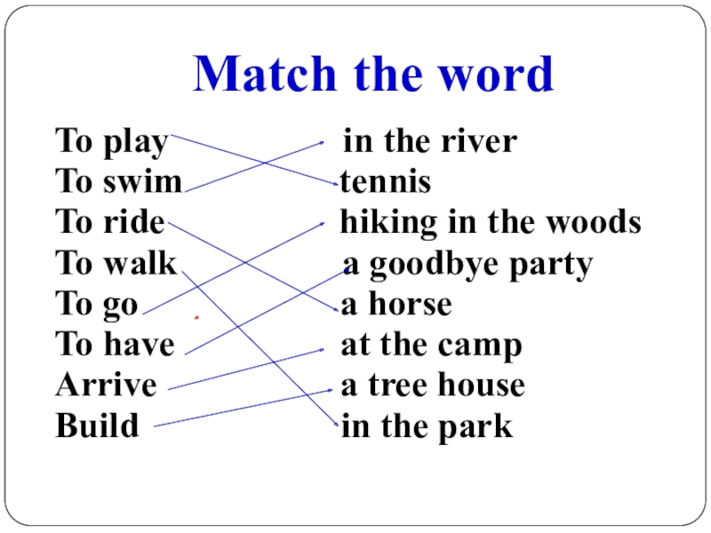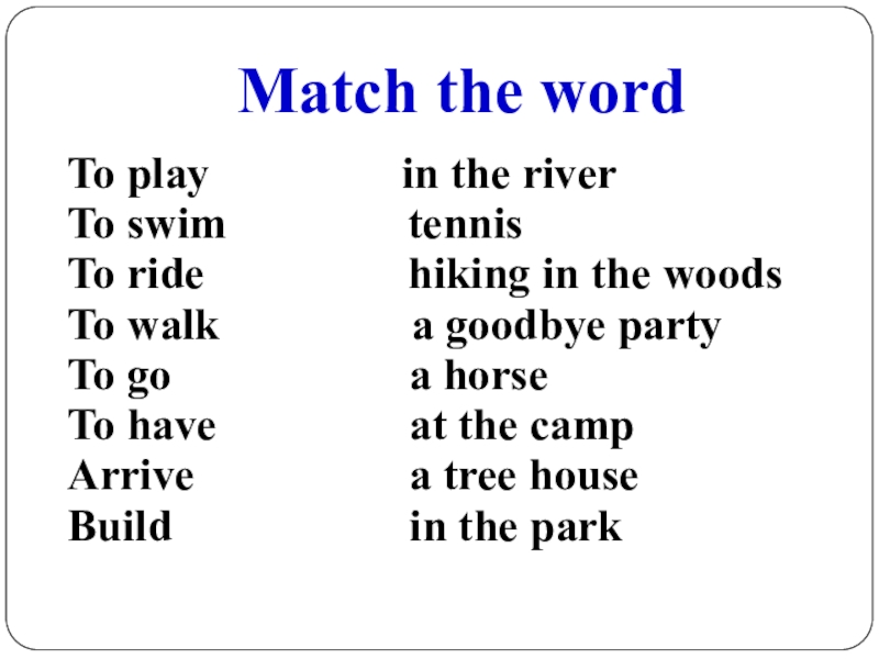 Match the word To play          in the riverTo