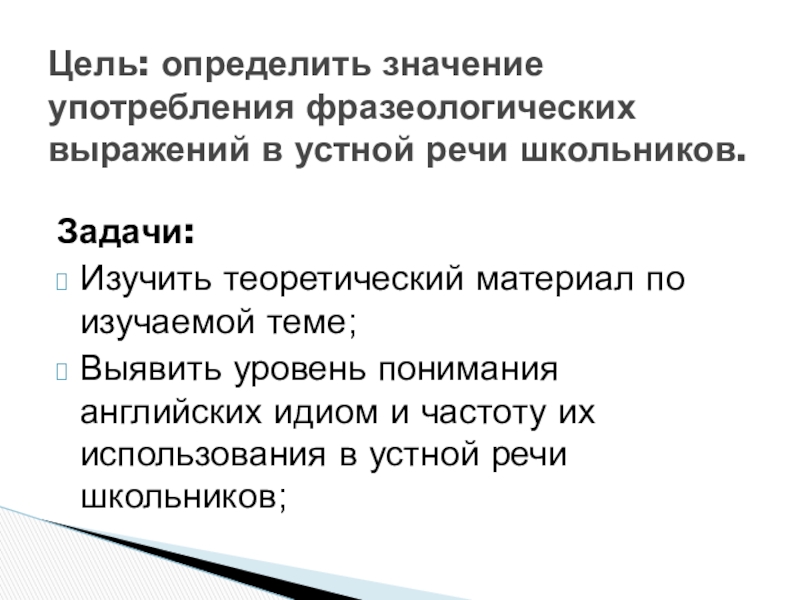 Цель: определить значение употребления фразеологических выражений в устной речи школьников.
