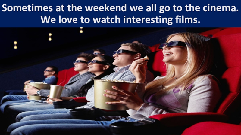 Слайд 14Sometimes at the weekend we all go to the cinema. We