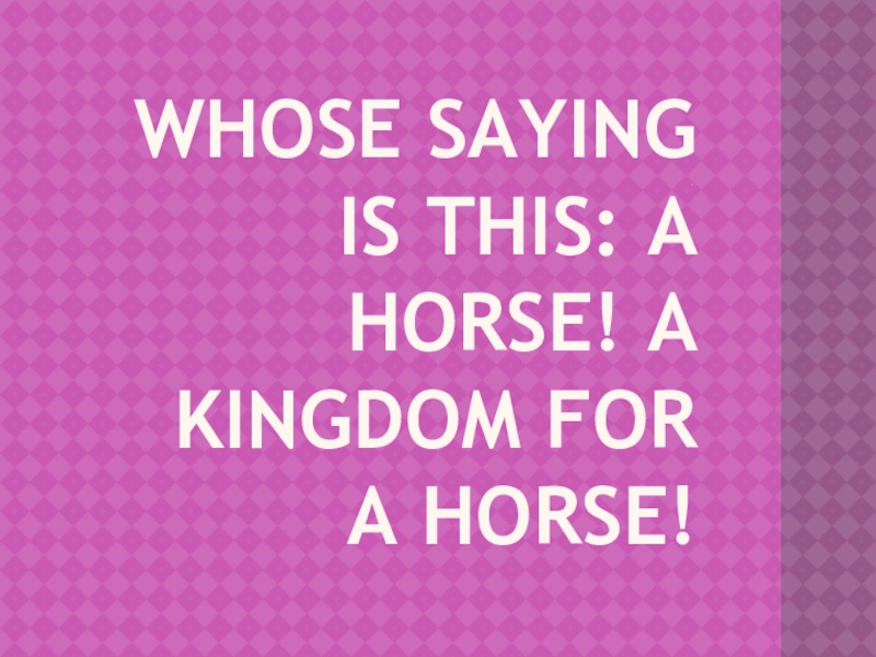 Слайд 25Whose saying is this: A horse! A Kingdom for a horse!
