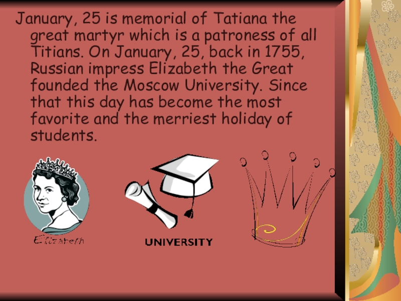 Слайд 2January, 25 is memorial of Tatiana the great martyr which is