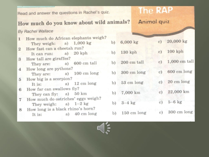 Презентация, доклад по английскому языку на тему Викторина о животных( Animal Quiz) для 7 класса