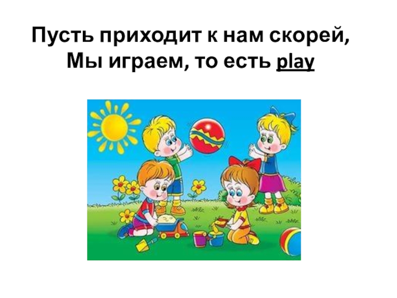 Слайд 3Пусть приходит к нам скорей, Мы играем, то есть play