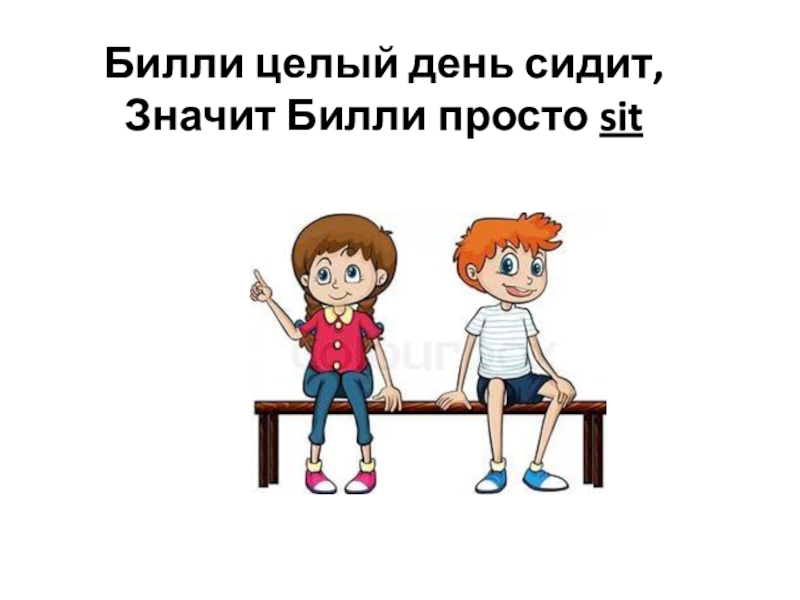 Слайд 2Билли целый день сидит, Значит Билли просто sit