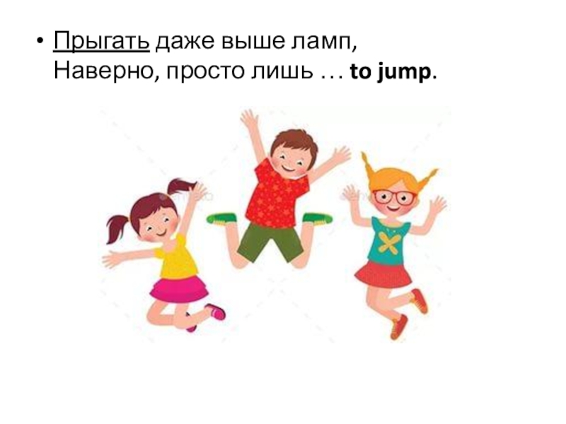 Слайд 5Прыгать даже выше ламп, Наверно, просто лишь … to jump.