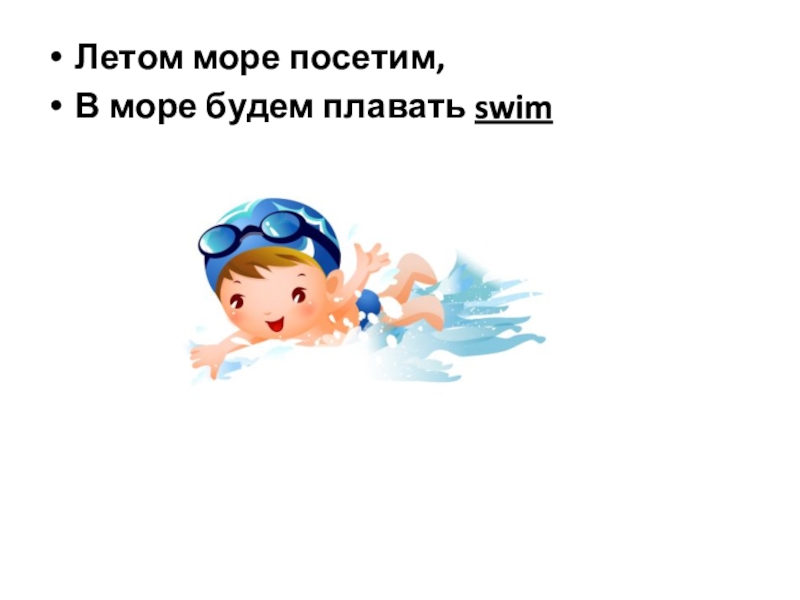 Летом море посетим,В море будем плавать swim