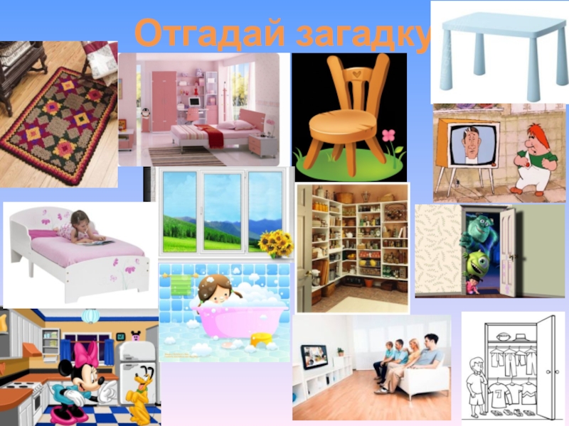 Слайд 26Скажите, как расположены предметы в комнате