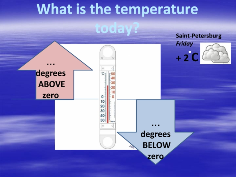 What is the temperature today?… degrees ABOVE zero… degrees BELOW zeroSaint-PetersburgFriday+ 2 C