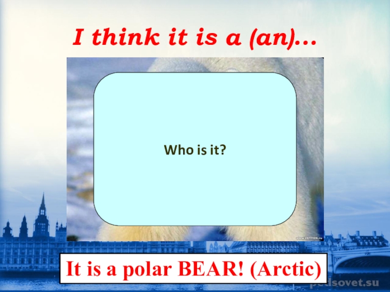 I think it is a (an)...Who is it?It is a polar BEAR! (Arctic)