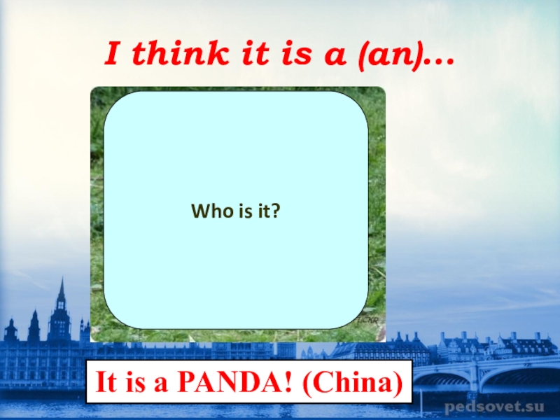 I think it is a (an)...Who is it?It is a PANDA! (China)