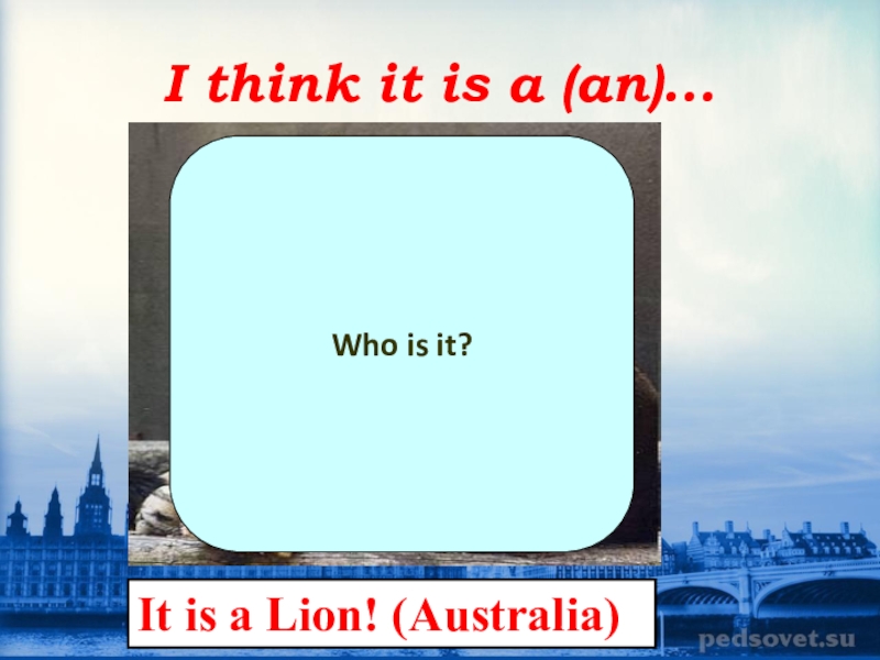 I think it is a (an)...Who is it?It is a Lion! (Australia)