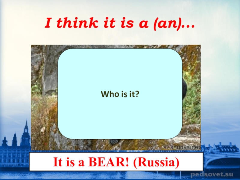 I think it is a (an)...Who is it?It is a BEAR! (Russia)
