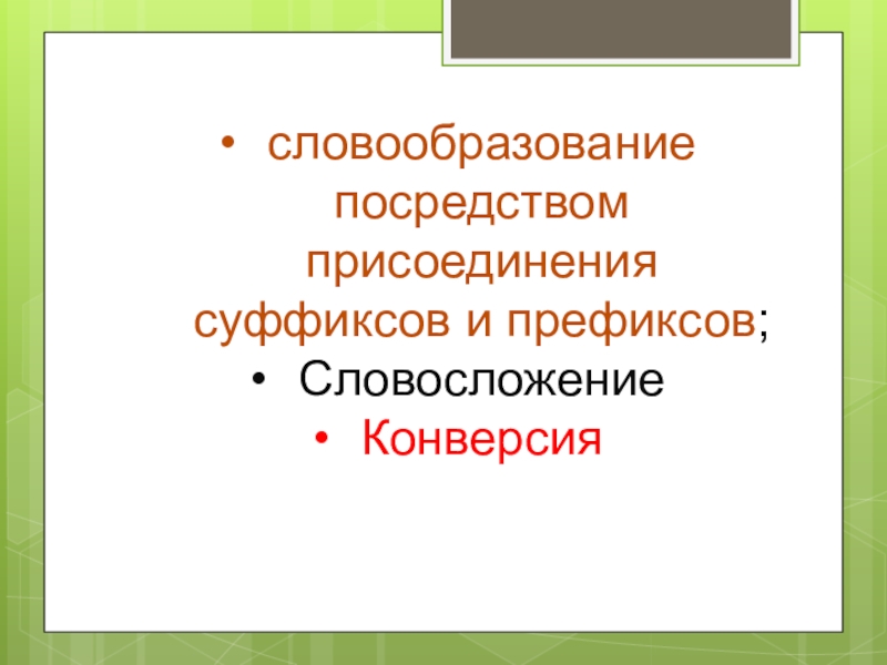 Слайд 6Словообразование посредством суффиксации и префиксации.