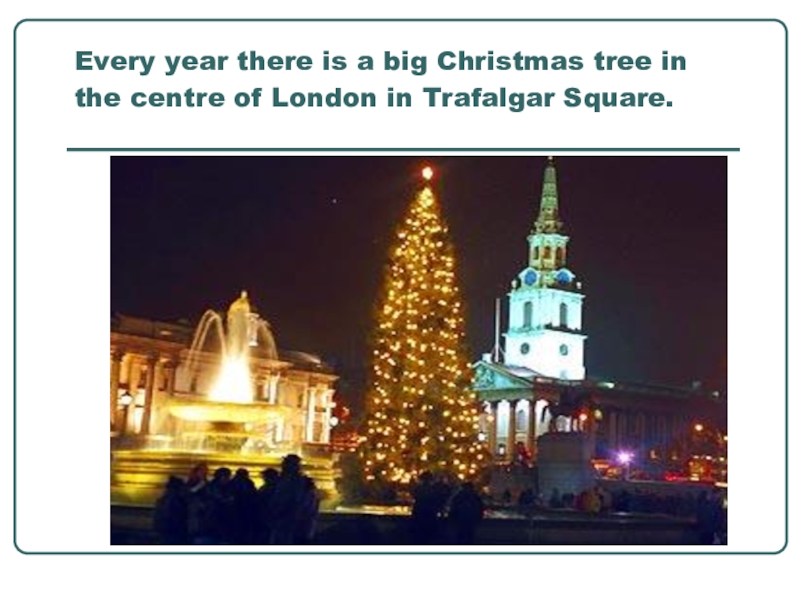 Every year there is a big Christmas tree in the centre of London in Trafalgar Square.