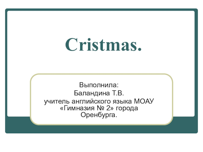 Сristmas.Выполнила:Баландина Т.В.учитель английского языка МОАУ «Гимназия № 2» города Оренбурга.