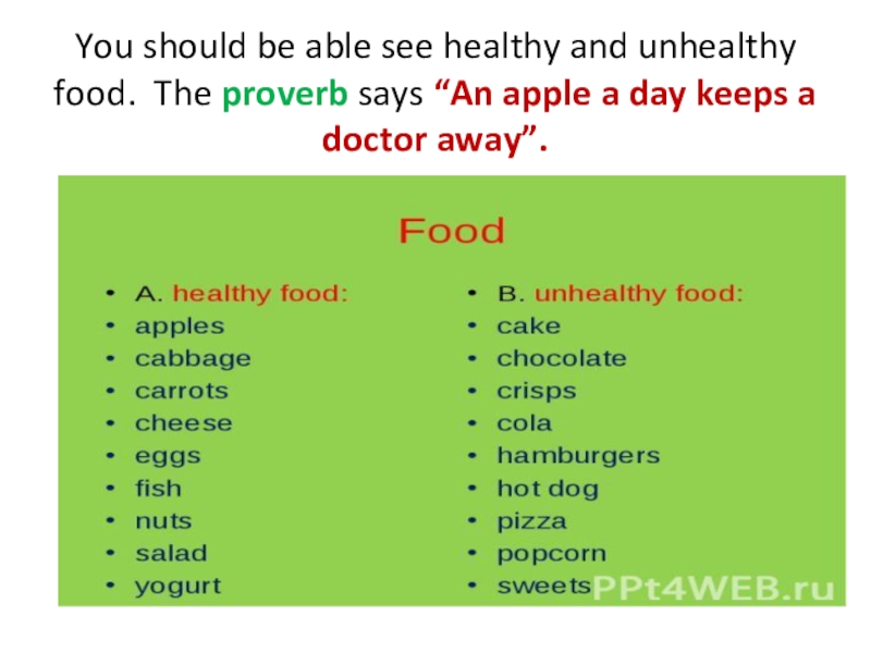 to describe in English the main issues relating to healthy lifestyles of the student: